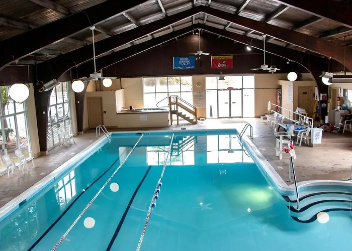Guests can work out in a gym facility or relax by a swimming pool.